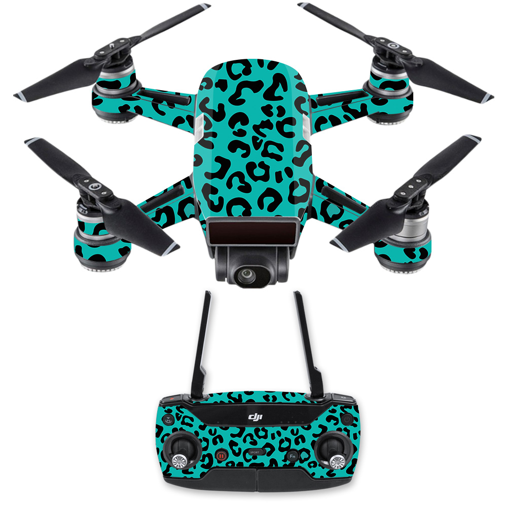 MightySkins DJSPCMB-Teal Leopard Skin Decal for DJI Spark Mini Drone Combo Sticker - Teal Leopard