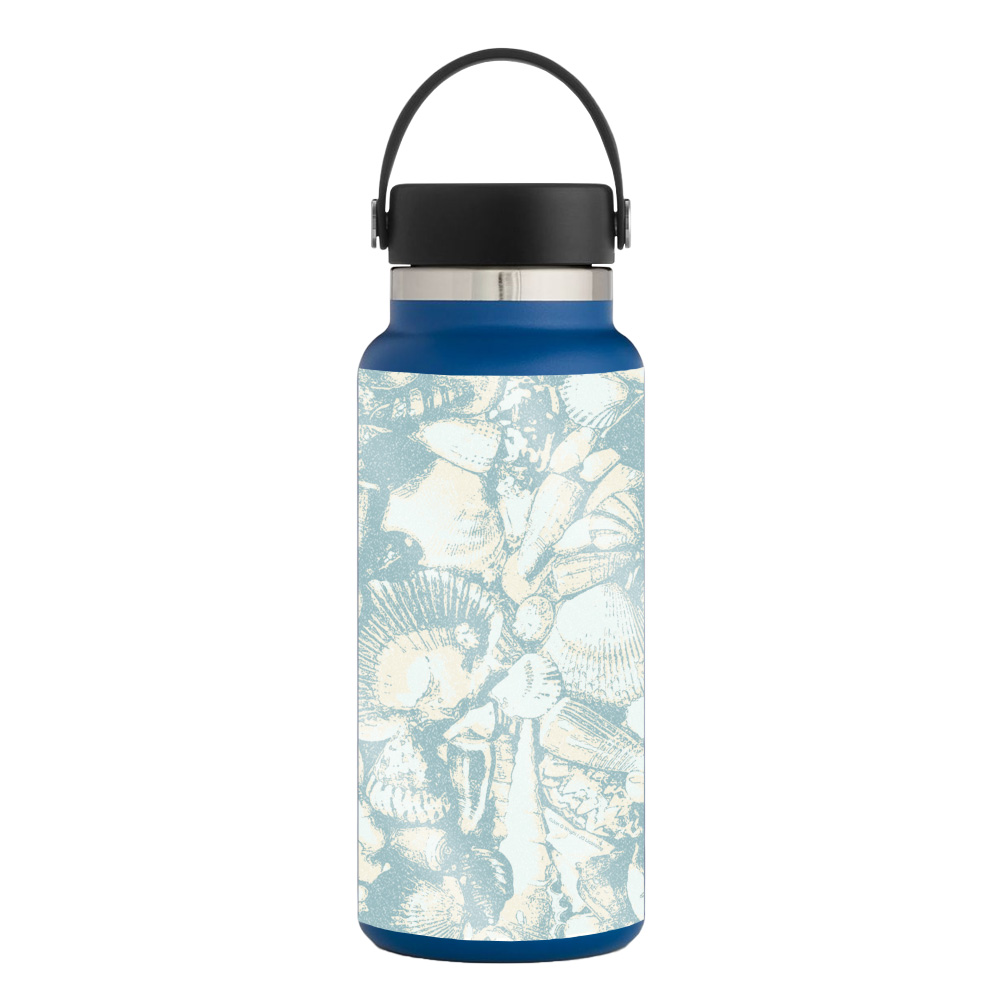 MightySkins GL-HFWI32-Blue Seashells Glossy Glitter Skin for Hydro Flask 32 oz Wide Mouth - Blue Seashells