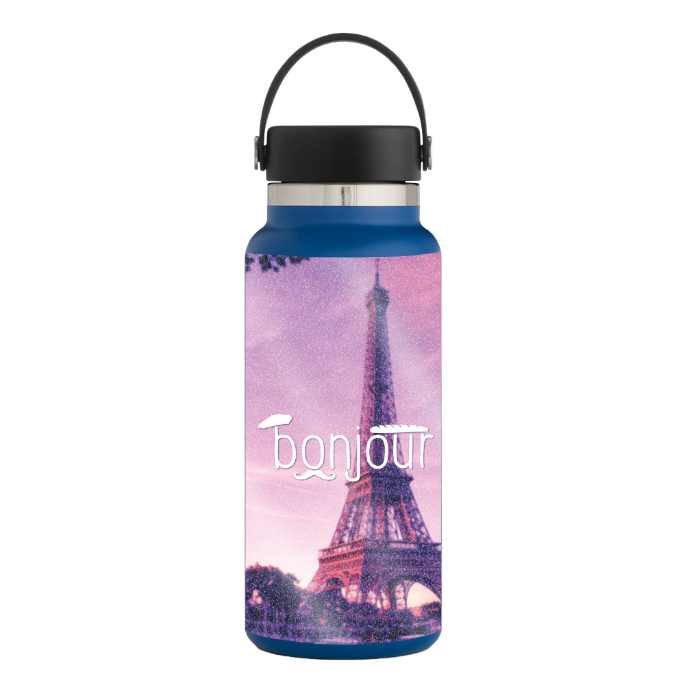 MightySkins GL-HFWI32-Bonjour Glossy Glitter Skin for Hydro Flask 32 oz Wide Mouth - Bonjour