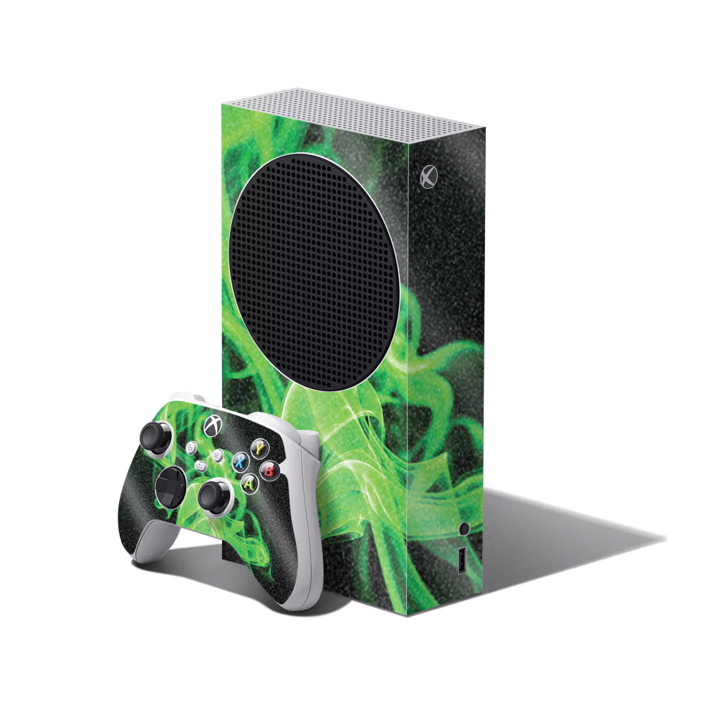 MightySkins GL-MIXBSERSCMB-Green Flames Glossy Glitter Skin for XBOX Series S Bundle - Green Flames