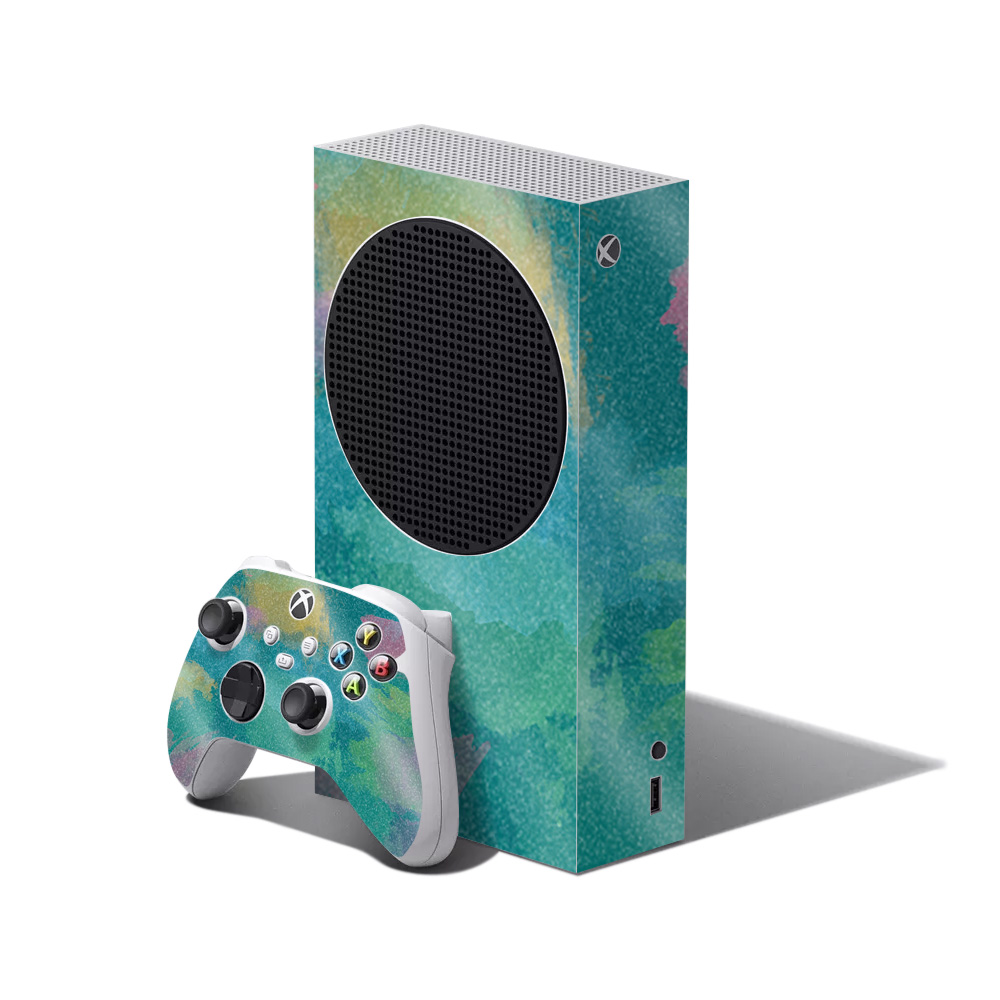 MightySkins GL-MIXBSERSCMB-Watercolor Blue Glossy Glitter Skin for XBOX Series S Bundle - Watercolor Blue
