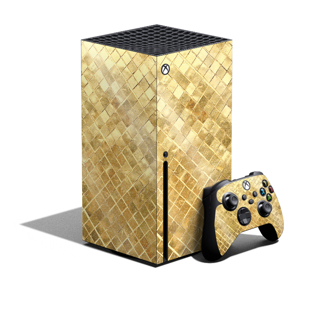 MightySkins GL-MIXBSERXCMB-Gold Tiles Glossy Glitter Skin for XBOX Series X Bundle - Gold Tiles