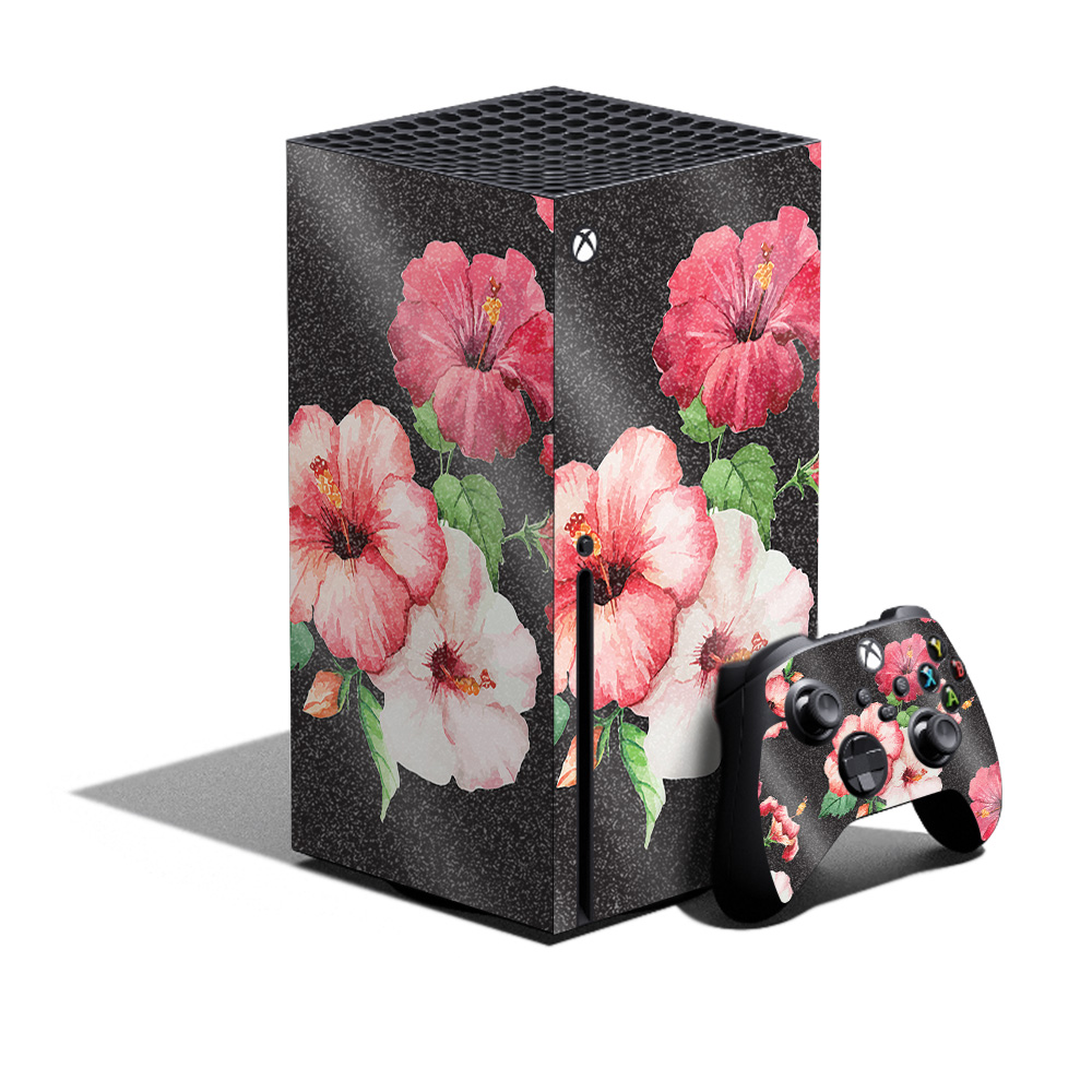 MightySkins GL-MIXBSERXCMB-Hibiscus Glossy Glitter Skin for XBOX Series X Bundle - Hibiscus