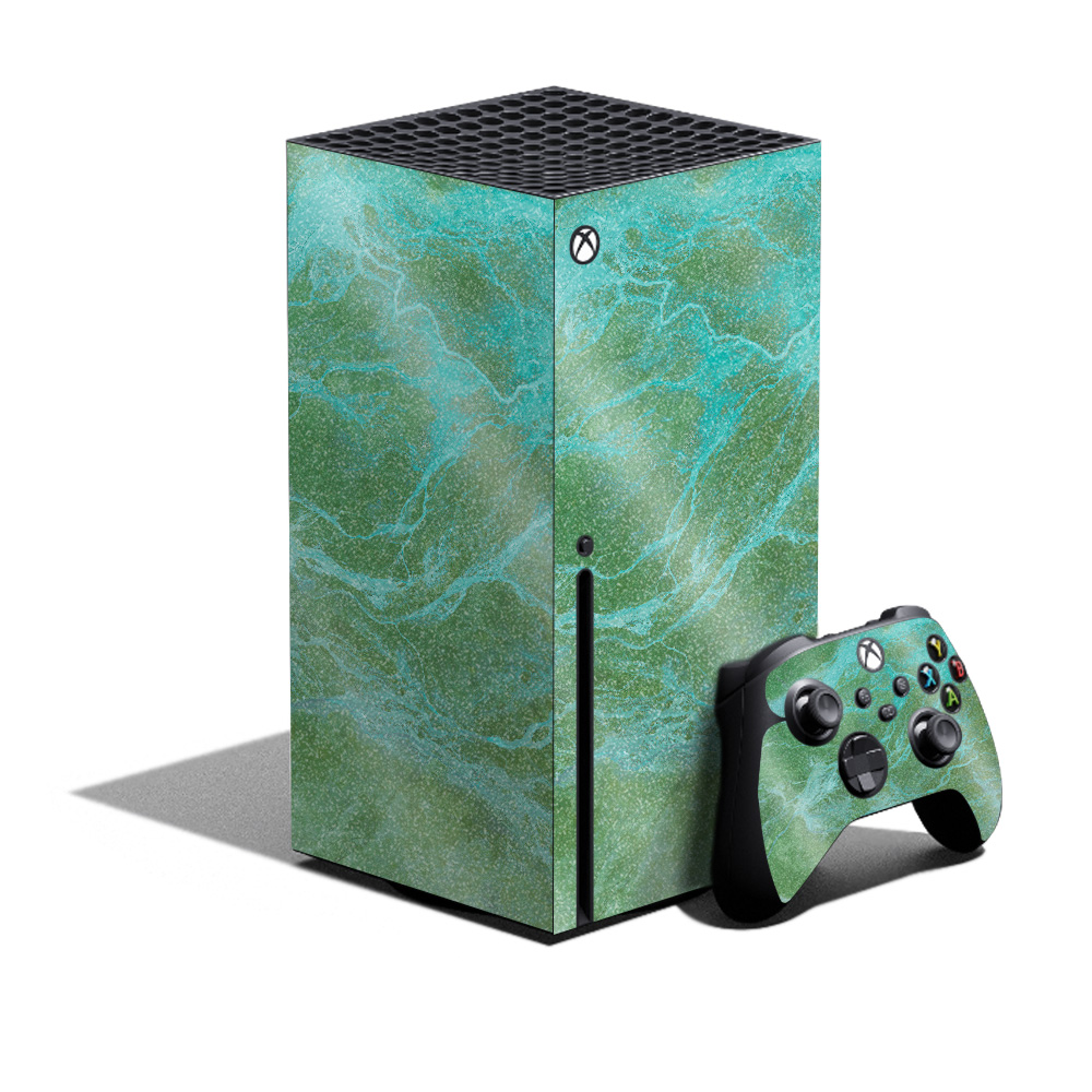 MightySkins GL-MIXBSERXCMB-Lime Marble Glossy Glitter Skin for XBOX Series X Bundle - Lime Marble