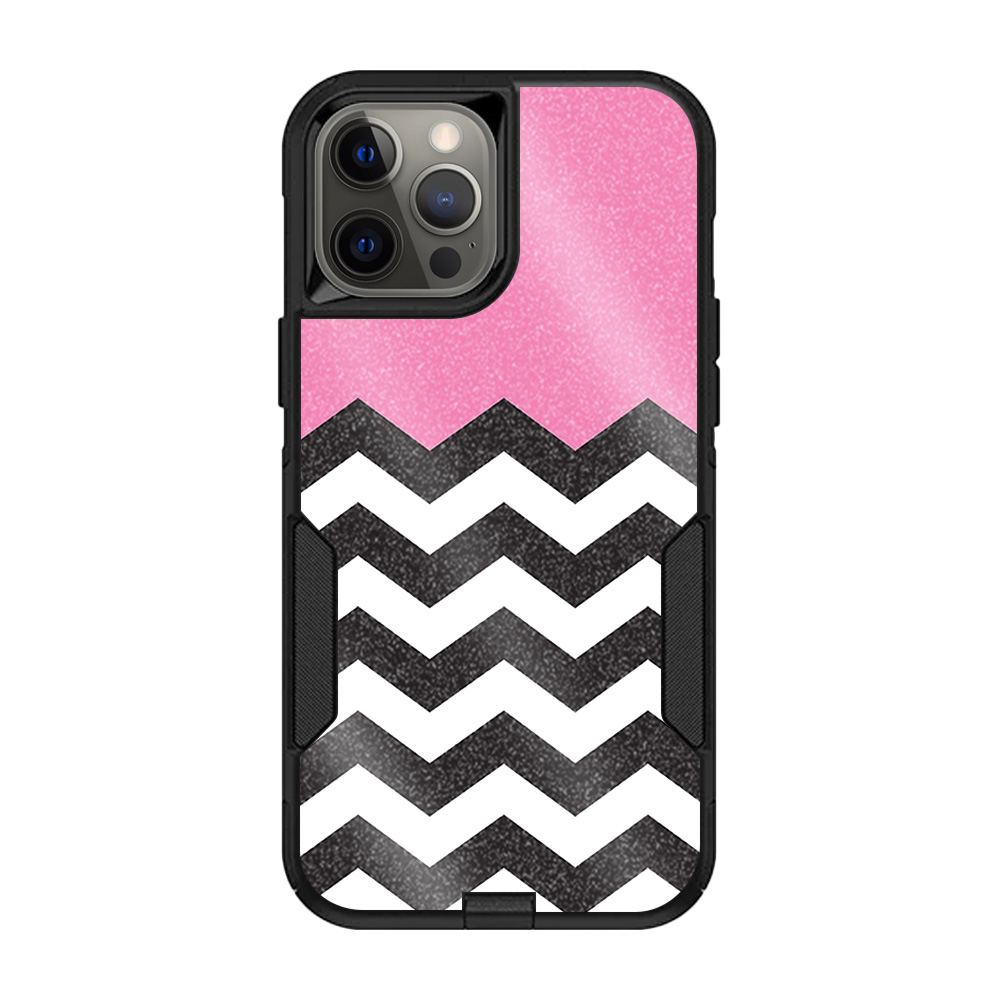 MightySkins GL-OTCIP12PRM-Pink Chevron Glossy Glitter Skin for OtterBox Commuter iPhone 12 Pro Max - Pink Chevron