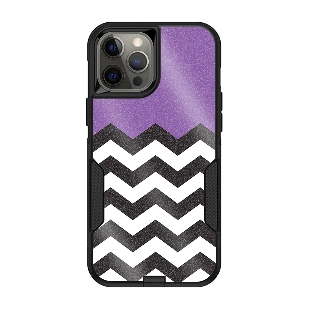 MightySkins GL-OTCIP12PRM-Purple Chevron Glossy Glitter Skin for OtterBox Commuter iPhone 12 Pro Max - Purple Chevron
