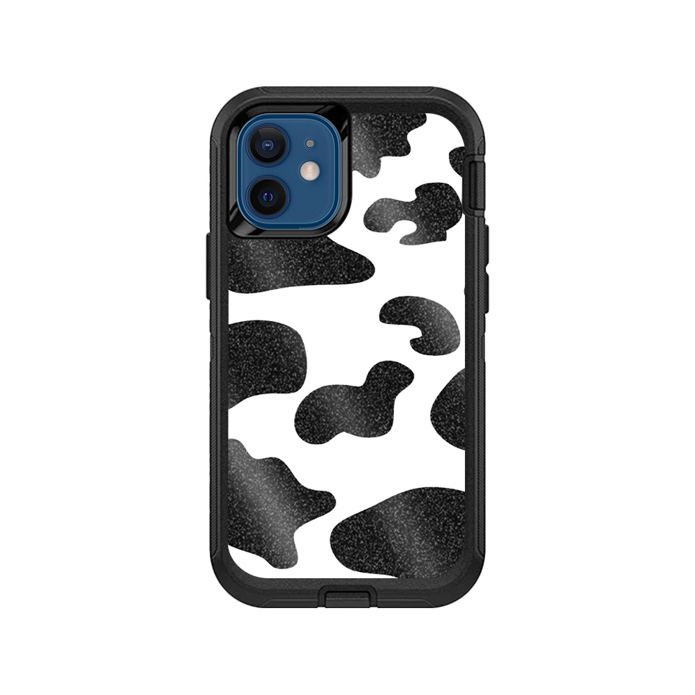MightySkins GL-OTDIP12MI-Cow Print Glossy Glitter Skin for OtterBox Defender iPhone 12 Mini - Cow Print