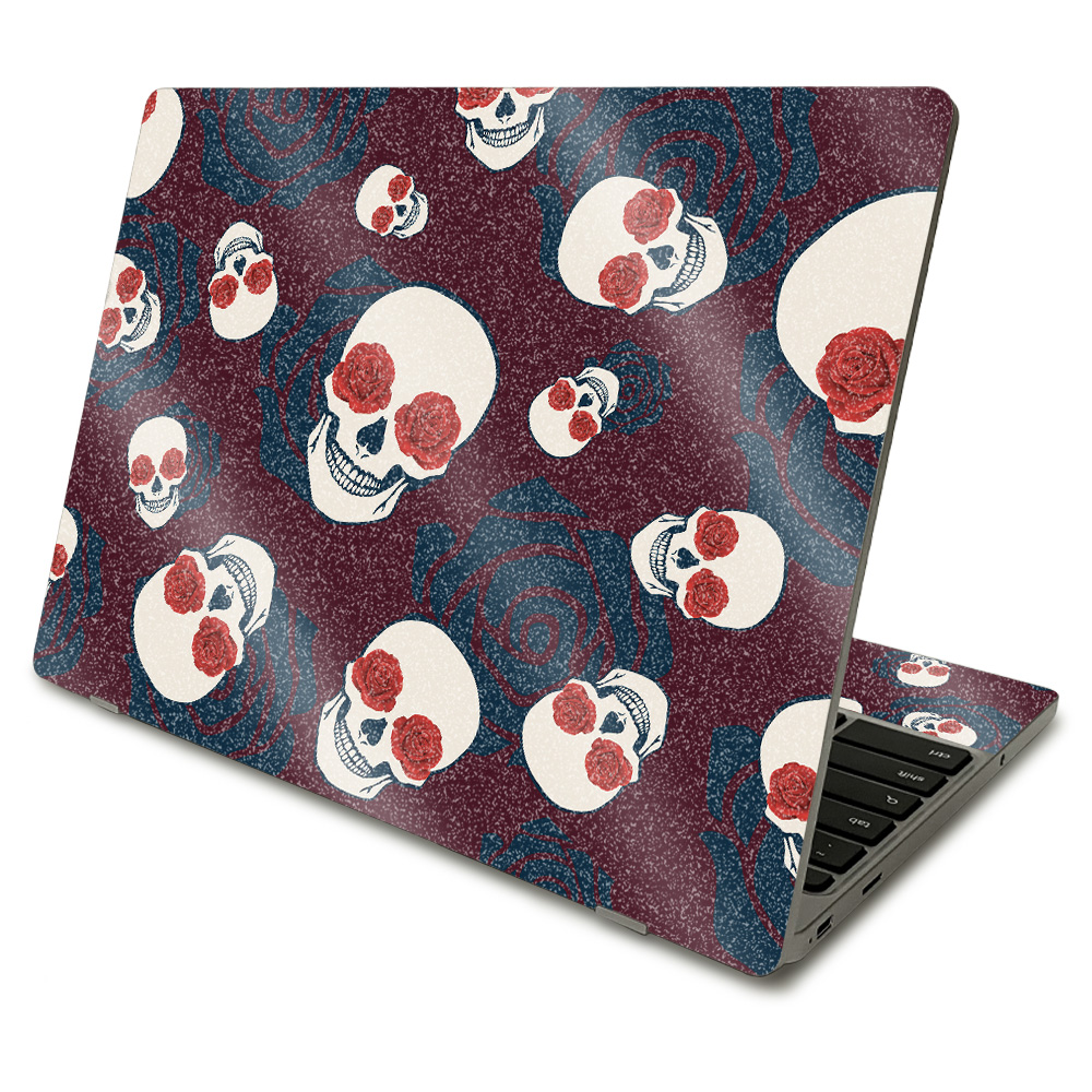 MightySkins GL-SACHBO411-Skulls N Roses Glossy Glitter Skin Compatible with Samsung Chromebook 4 2021 11.6 in. - Skulls