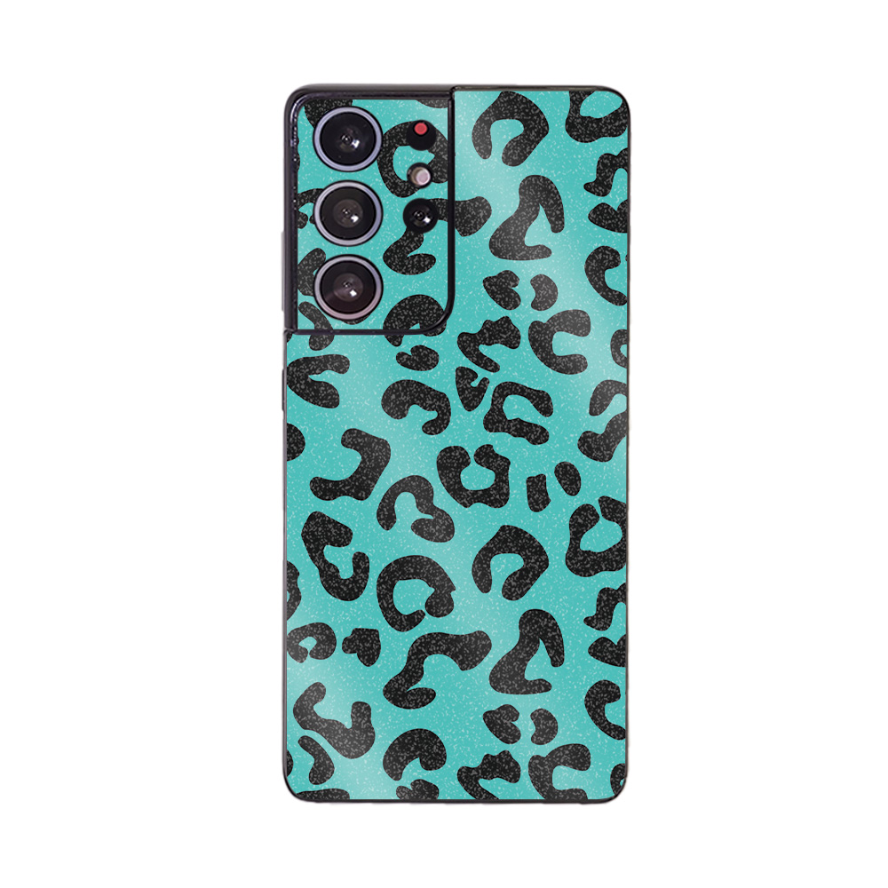 MightySkins GL-SAGS21UL-Teal Leopard Glossy Glitter Skin Compatible with Samsung Galaxy S21 Ultra - Teal Leopard