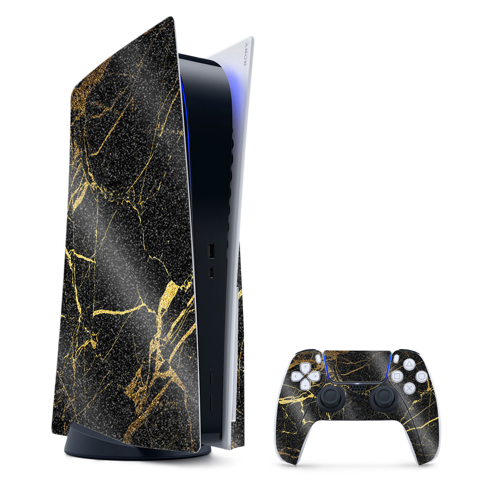 MightySkins GL-SOPS5CMB-Black Gold Marble Glossy Glitter Skin for PS5 & Playstation 5 Bundle - Black Gold Marble
