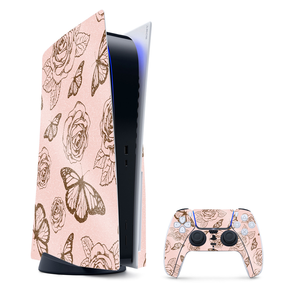 MightySkins GL-SOPS5CMB-Butterfly Garden Glossy Glitter Skin for PS5 & Playstation 5 Bundle - Butterfly Garden