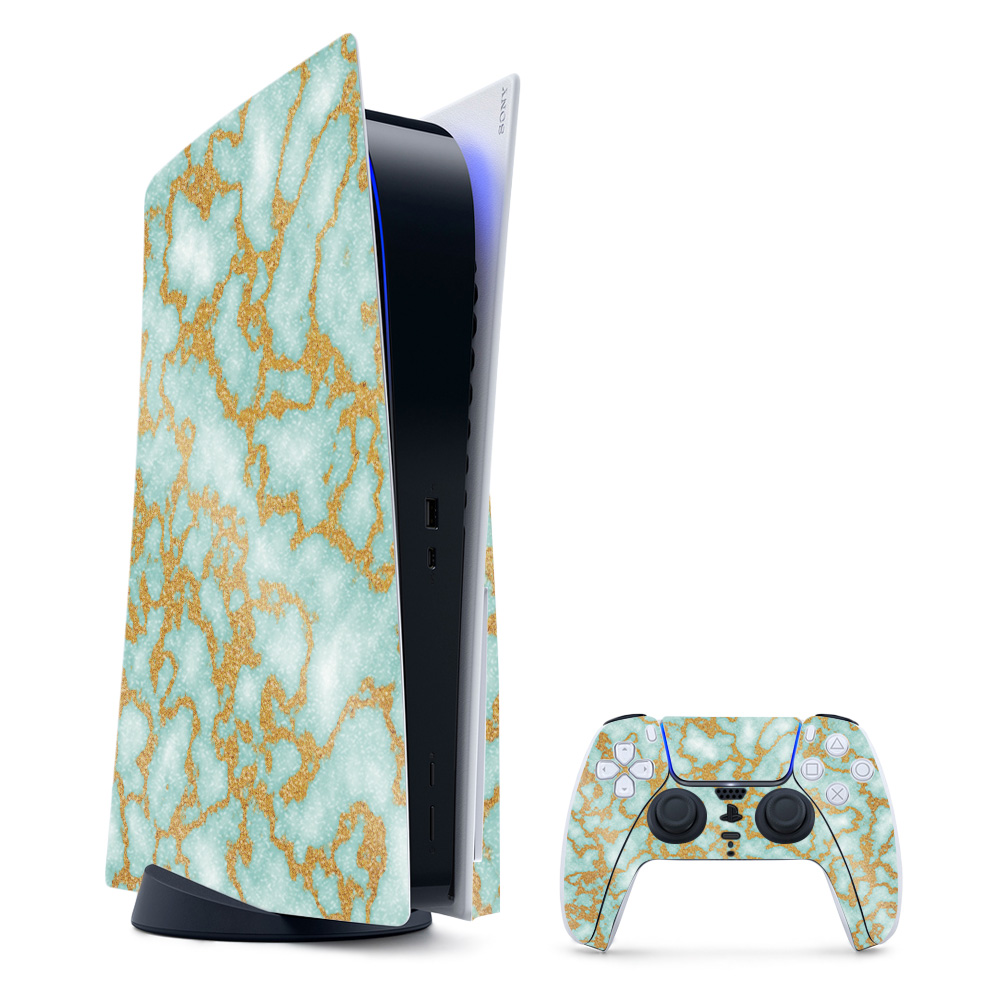 MightySkins GL-SOPS5CMB-Golden Jade Glossy Glitter Skin for PS5 & Playstation 5 Bundle - Golden Jade