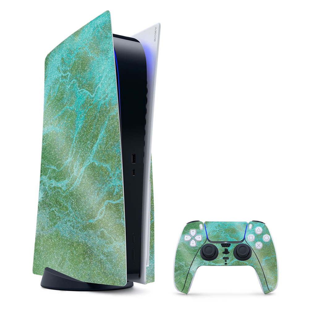 MightySkins GL-SOPS5CMB-Lime Marble Glossy Glitter Skin for PS5 & Playstation 5 Bundle - Lime Marble