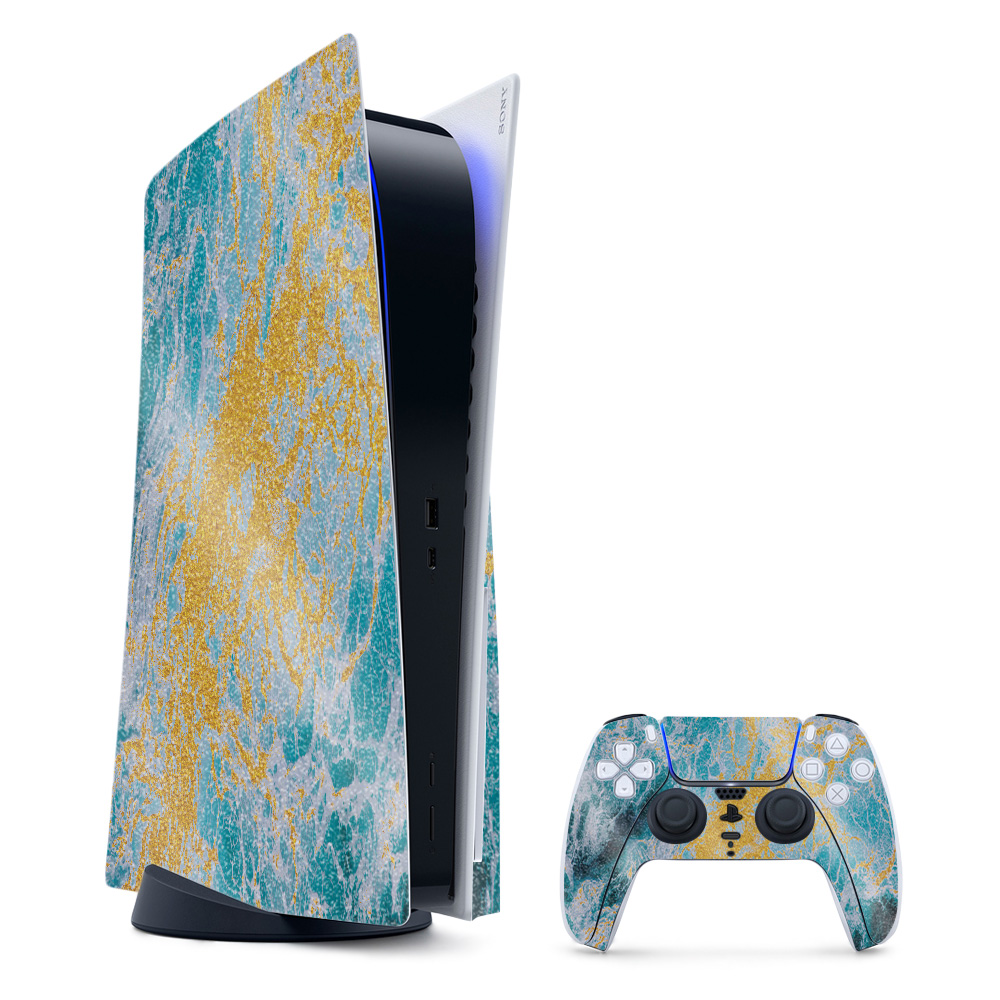 MightySkins GL-SOPS5CMB-Ocean Marble Glossy Glitter Skin for PS5 & Playstation 5 Bundle - Ocean Marble