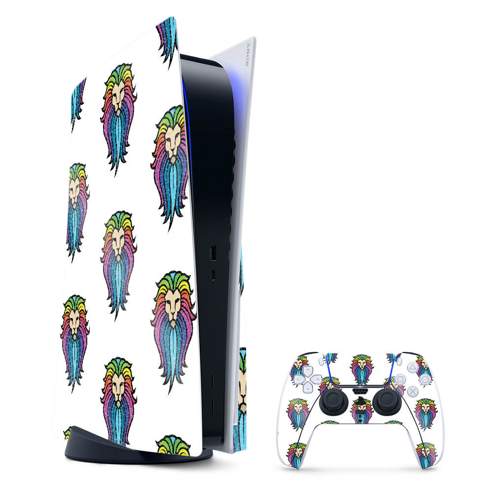MightySkins GL-SOPS5CMB-Rainbow Lion Glossy Glitter Skin for PS5 & Playstation 5 Bundle - Rainbow Lion