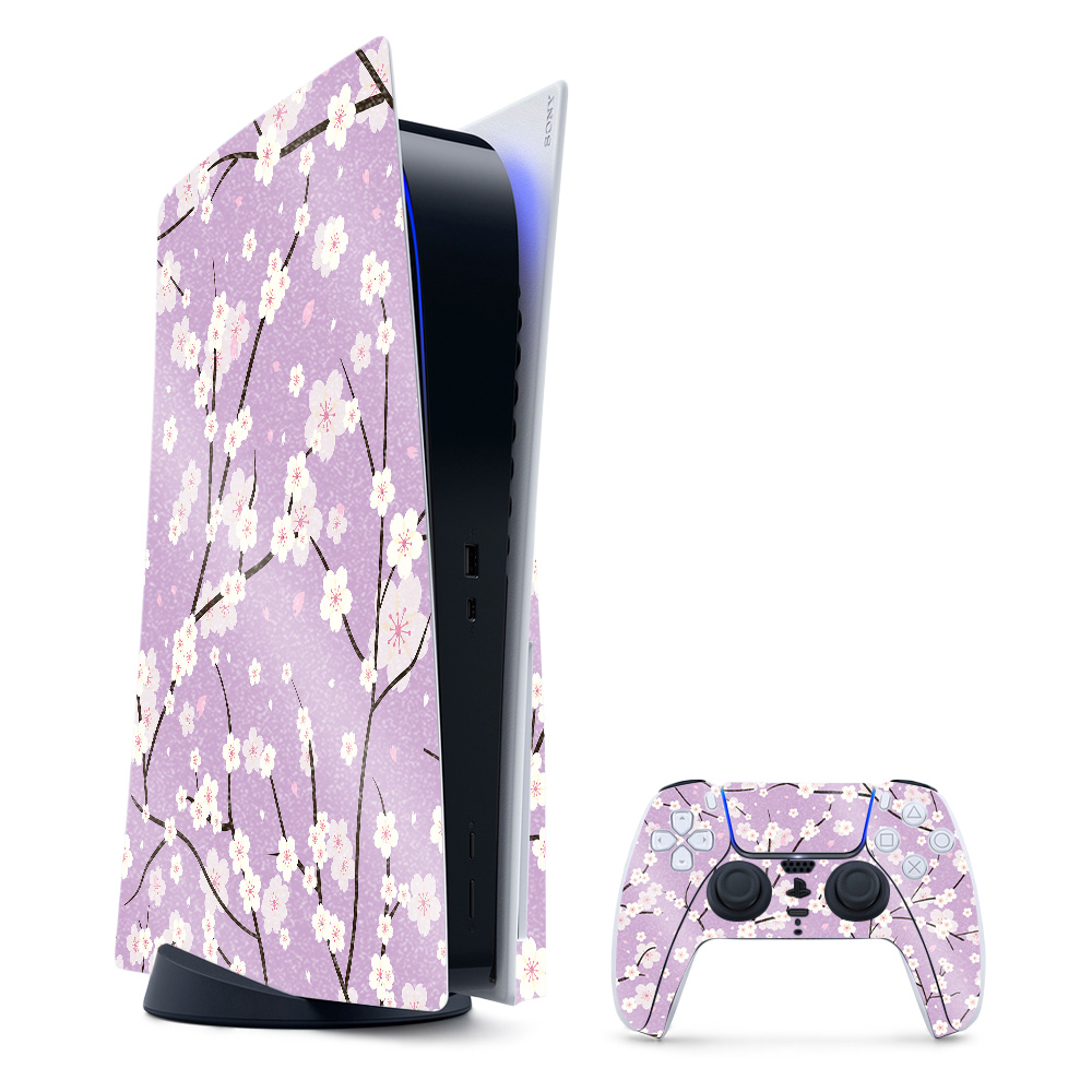 MightySkins GL-SOPS5CMB-Sakura Purple Glossy Glitter Skin for PS5 & Playstation 5 Bundle - Sakura Purple