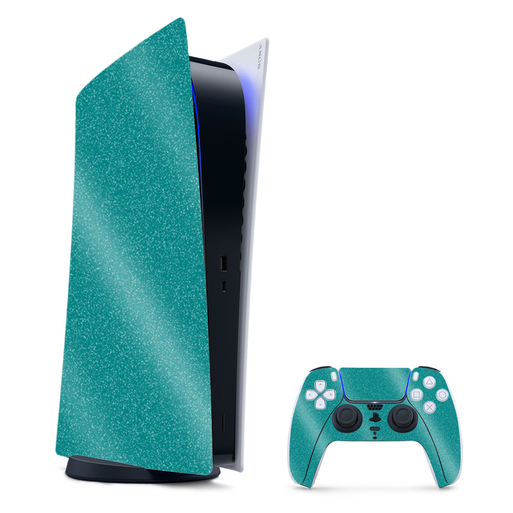MightySkins GL-SOPS5DGCMB-Solid Teal Glossy Glitter Skin for PS5 & Playstation 5 Digital Edition Bundle - Solid Teal