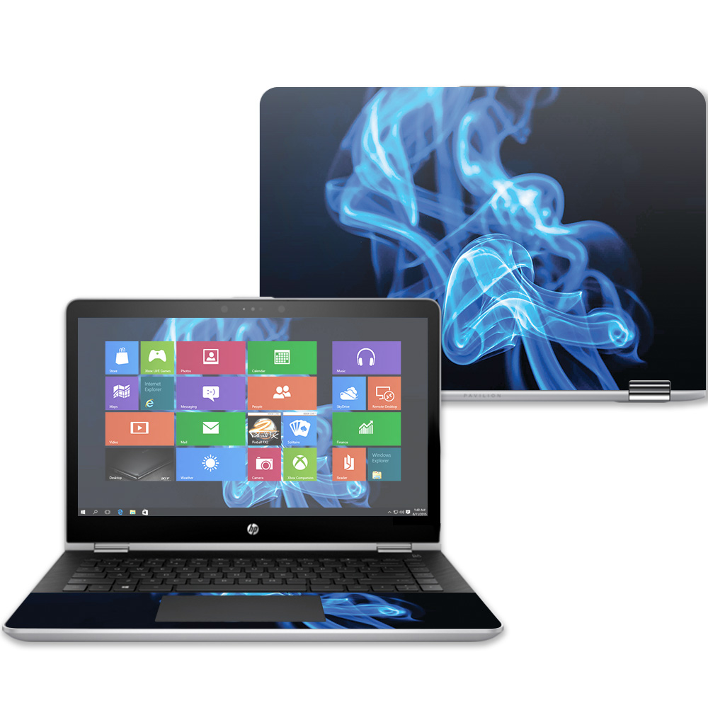 MightySkins HPPX360143-Blue Flames 14 in. Skin Decal Wrap for HP Pavilion X360 2017 Sticker - Blue Flames