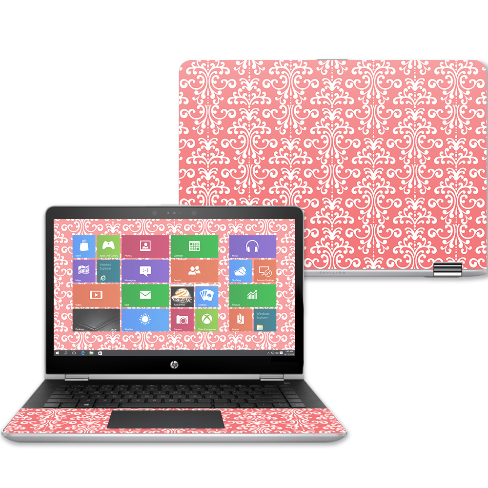 MightySkins HPPX360143-Coral Damask Skin Decal Wrap for 14 in. HP Pavilion x360 2017 Sticker - Coral Damask