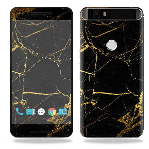 MightySkins HUNEX6P-Black Gold Marble Skin for Huawei Nexus 6P Wrap Cover Sticker - Black Gold Marble