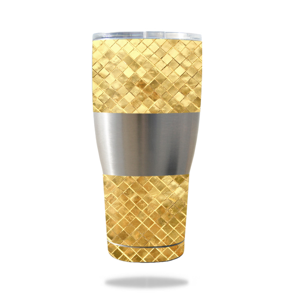 MightySkins IBTUM30-Gold Tiles Skin for IBEX 30 oz Tumbler Wrap Cover Sticker - Gold Tiles