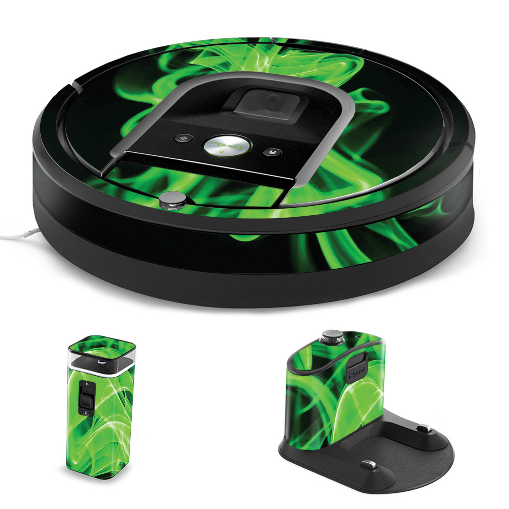MightySkins IRRO960-Green Flames Skin for iRobot Roomba 960 Robot Vacuum, Green Flames