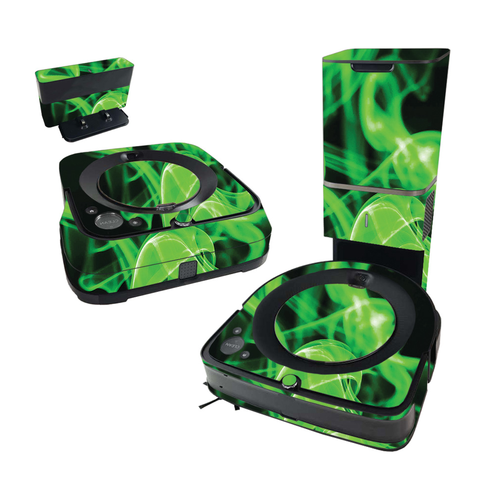 MightySkins IRROS9PLBUN-Green Flames Skin for iRobot Roomba s9 Plus Vacuum & Braava Jet m6 Bundle - Green Flames