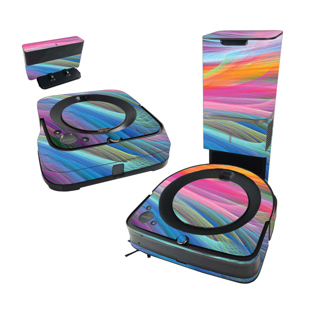 MightySkins IRROS9PLBUN-Rainbow Waves Skin for iRobot Roomba s9 Plus Vacuum & Braava Jet m6 Bundle - Rainbow Waves