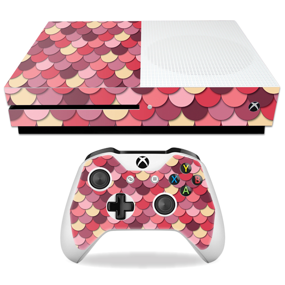 MightySkins MIXBONES-Pink Scales Skin Decal Wrap for Microsoft Xbox One S Sticker - Pink Scales