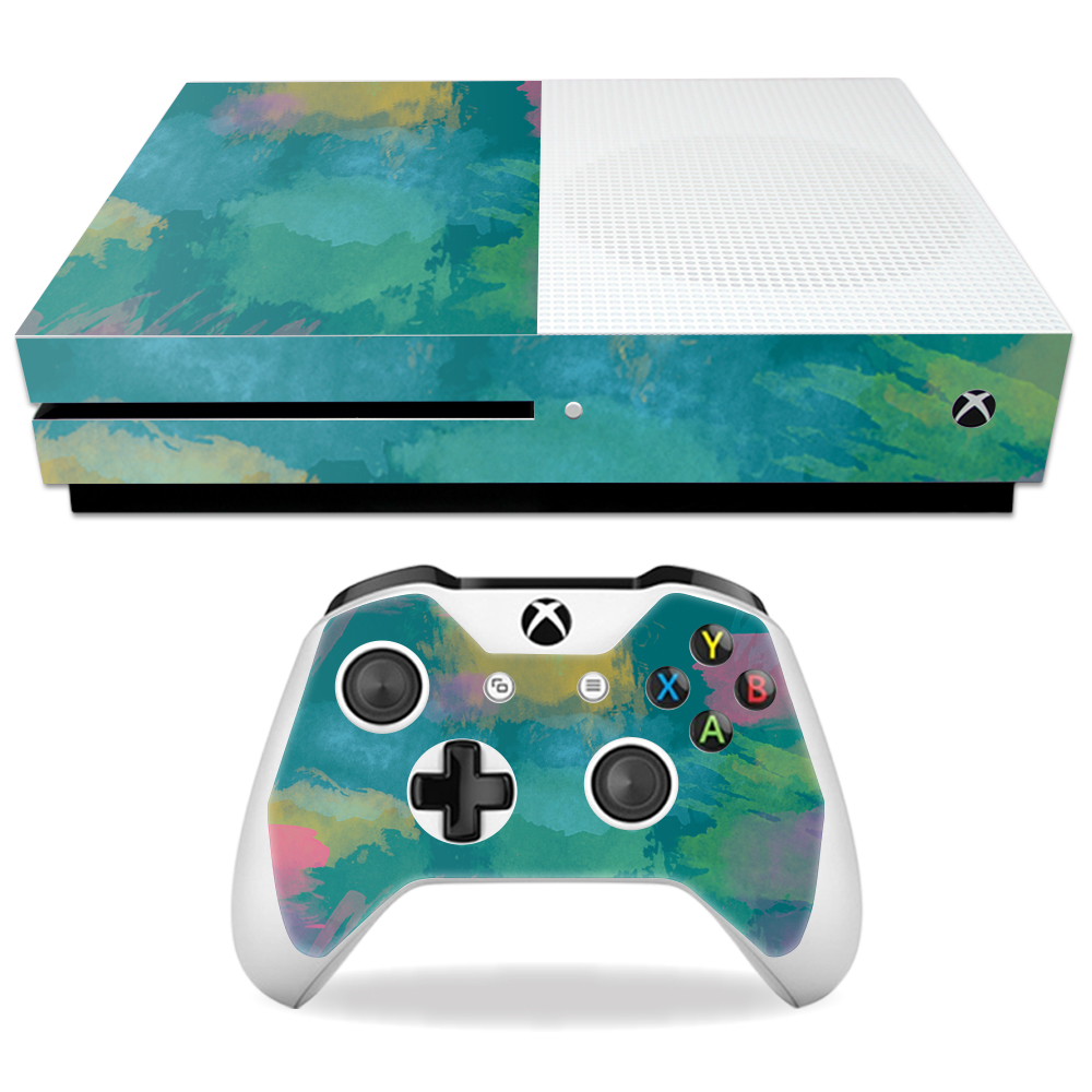 MightySkins MIXBONES-Watercolor Blue Skin Decal Wrap for Microsoft Xbox One S Sticker - Watercolor Blue