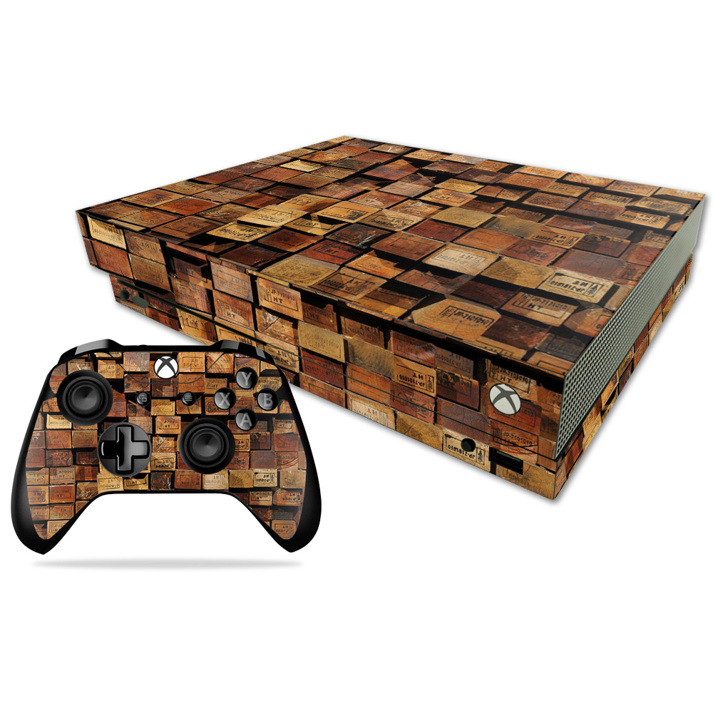 MightySkins MIXBONXCMB-Stacked Wood Skin Decal Wrap for Microsoft Xbox One X Combo Sticker - Stacked Wood