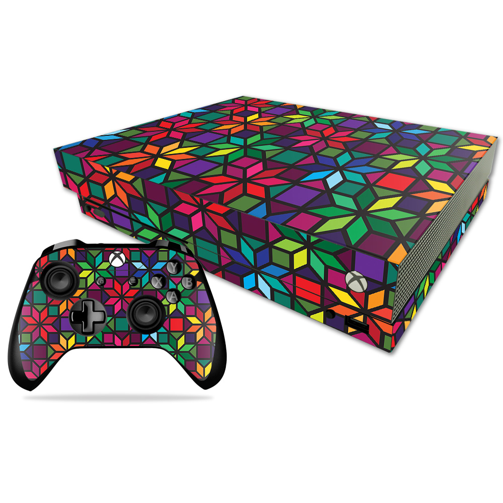 MightySkins MIXBONXCMB-Stained Glass Window Skin Decal Wrap for Microsoft Xbox One X Combo Sticker - Stained Glass Windo