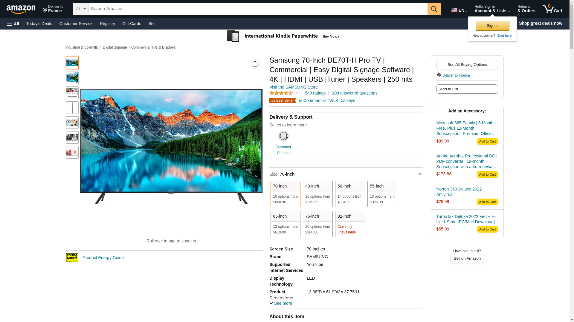 Samsung 70-Inch BE70T-H Pro TV | Commercial | Easy Digital Signage Software | 4K | HDMI | USB |Tuner | Speakers | 250 nits