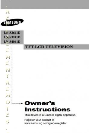 As an Amazon Associate, we earn from qualifying purchases. Buy SAMSUNG LNS2641DOM LNS2641 LNS3241 LNS4041 TV TV Operating Manual SAMSUNG . LNS2641DOM Gallery Attributes Brand name, Manufacturer name, ManufacturerSAMSUNG ConditionNEW Extra Product NameBuy SAMSUNG LNS2641DOM LNS2641 LNS3241 LNS4041 TV TV Operating Manual extendedQty, qtyInStock0 moq, multiple, tierMinQty11 MPNLNS2641DOM qtySourceBlockString SKU62270 snippetSAMSUNG LNS2641DOM tv operating manual for LNS2641, LNS3241, LNS4041 TV models tierPrice17.99 Distributor offers SellerSKUMOQIn stockMultiplePrices replacementremotes.com62270111 @ $7.99