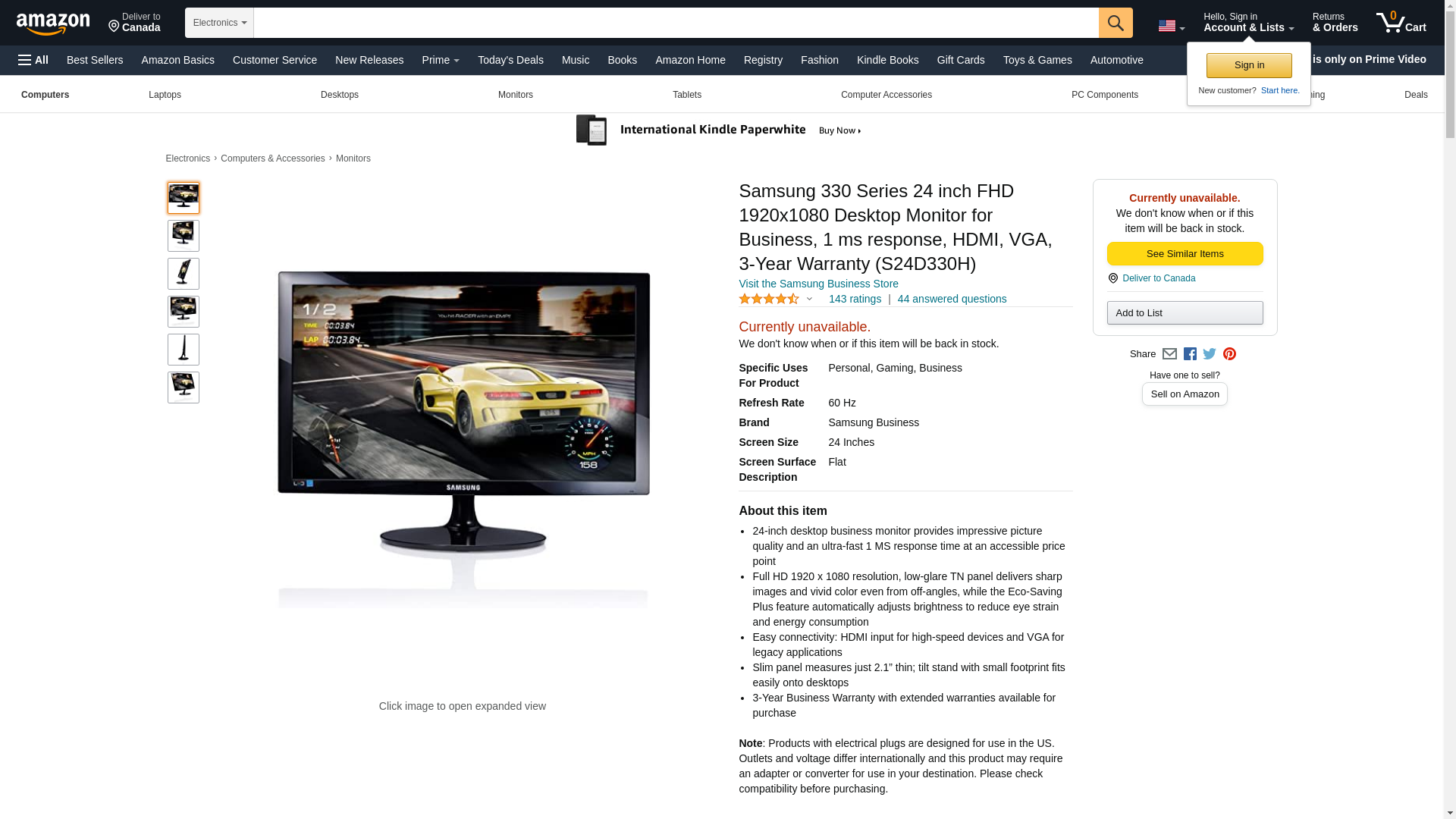 Samsung 330 Series 24 inch FHD 1920x1080 Desktop Monitor for Business, 1 ms response, HDMI, VGA, 3-Year Warranty (S24D330H)