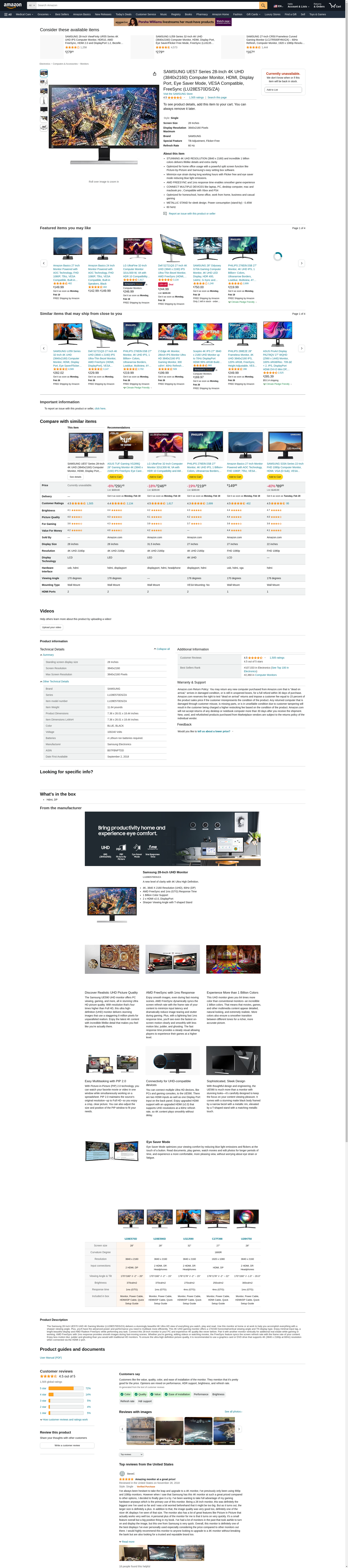 SAMSUNG UE57 Series 28-Inch 4K UHD (3840x2160) Computer Monitor, HDMI, Display Port, Eye Saver Mode, VESA Compatible, FreeSync (LU28E570DS/ZA)