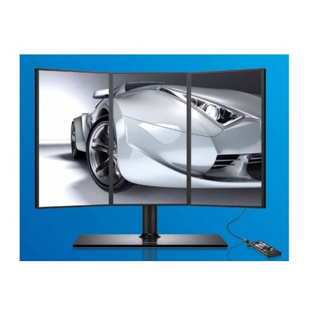 Product FeaturesWide angle view of 178 / 178 Multi-Display Ready from the Box Ultra-Thin Bezel,Super-Seamless Viewing Brilliant Full HD Picture Quality Specialized Stand Supplied 3,000 : 1 static contrast ratio and a 150,000 : 1 dynamic contrast ratio Special Features Number of Screens: 3 Screen Size: 23" Maximum Response Time: 8 ms Horizontal Viewing Angle: 178? Maximum Resolution: 1920 x 1080 Color Support: 16.7 Million Colors Contrast Ratio: 3000:1 Brightness: 300 Nit Interfaces/Ports: DVI, DisplayPort, VGA Includes stand plus one each DVI, DIsplayPort, USB and power cables plus remote control pad VESA Mount Compatible Landscape Dimensions: 62.43" x 22.11" x 12.09" Portrait Dimensions: 36.38" x 26.48" x 12.09" weight approximately 53 pounds Graphics and Display LCD Native Resolution: 1920 x 1080 Cases and Expandability Size LWH: 17.4 inches, 26.5 inches, 21.5 inches Weight: 53 pounds
