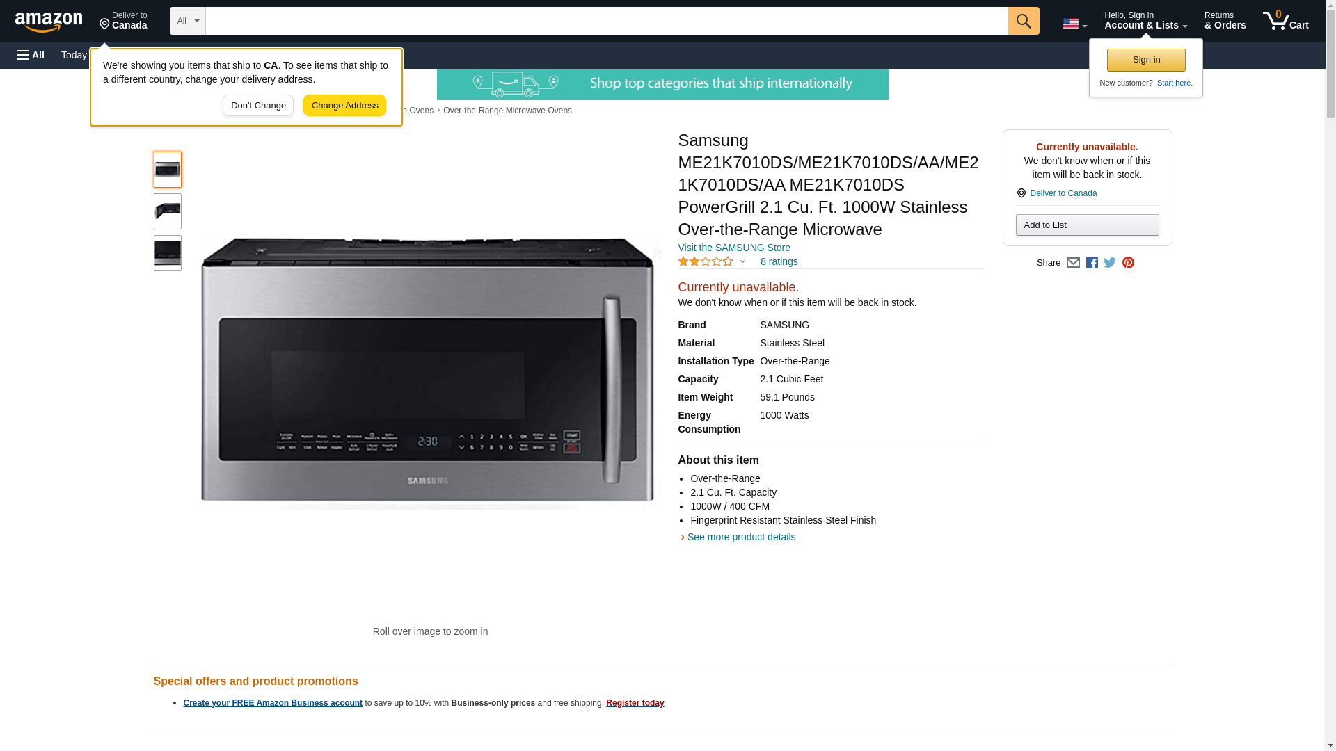 Samsung ME21K7010DS / ME21K7010DS / ME21K7010DS ME21K7010DS PowerGrill 2.1 Cu. Ft. 1000W Stainless Over-the-Range Microwave