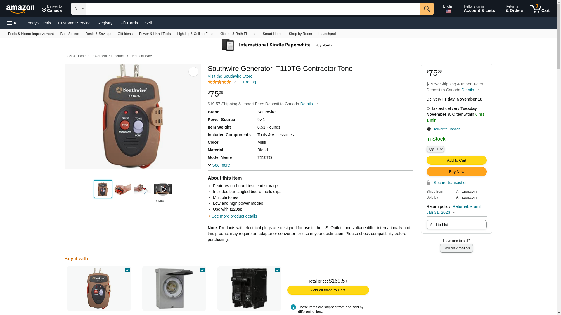 ![]() Platt.com | 0065032 | 1 | 1 | 1 @ $100.42 |