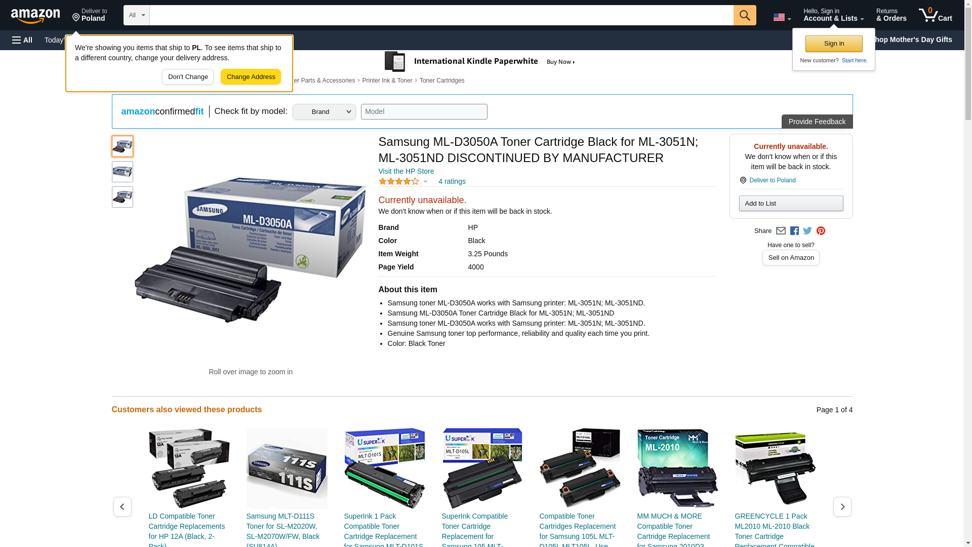 Samsung ML-D3050A Toner Cartridge for ML-3050/3051 Printers (4,000 pages). D3050A Toner Cartridge for ML-3050/3051 Printers (4,000 pages).