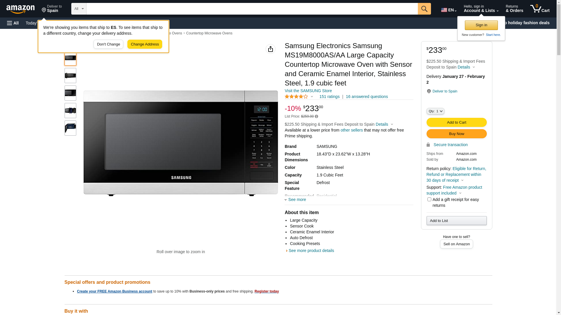 Samsung Electronics Samsung MS19M8000AS/AA Large Capacity Countertop Microwave Oven with Sensor and Ceramic Enamel Interior, Stainless Steel, 1.9 cubic feet