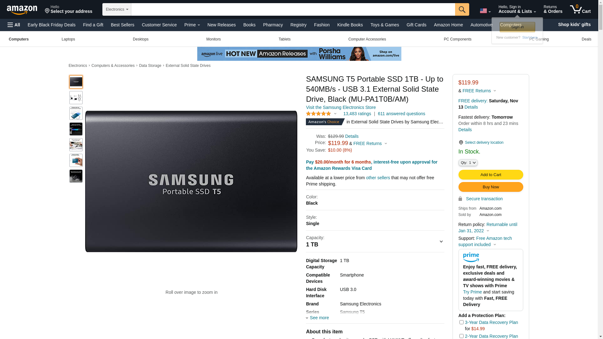 ![]() bhphotovideo.com | SAMUPA1T0BAM | 1 | 1 | 1 @ $139.99 | |