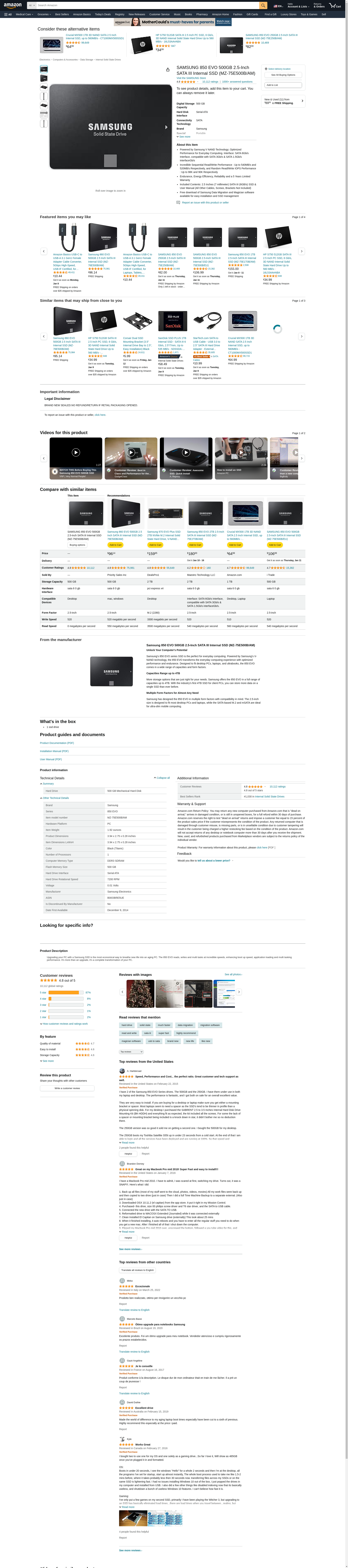 SAMSUNG 850 EVO 500GB 2.5-Inch SATA III Internal SSD (MZ-75E500B/AM)