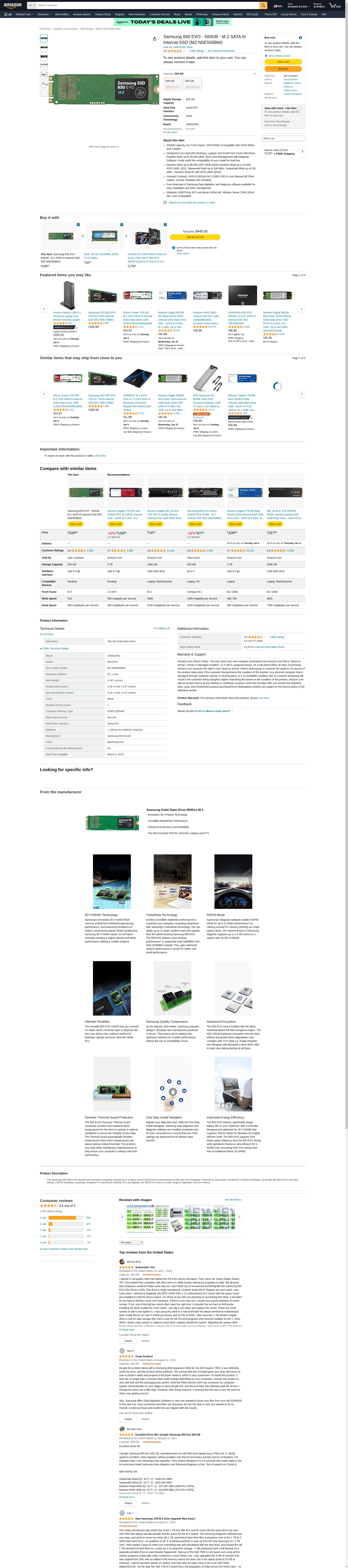Samsung 850 EVO - 500GB - M.2 SATA III Internal SSD (MZ-N5E500BW)