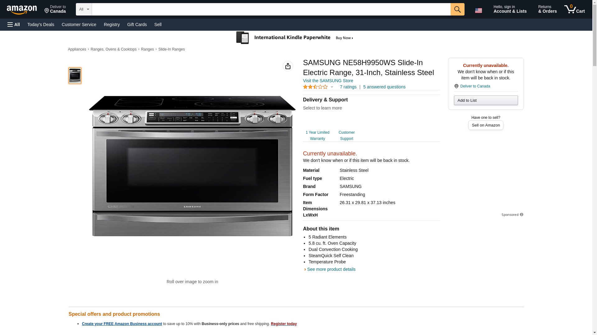 SAMSUNG NE58H9950WS Slide-In Electric Range, 31-Inch, Stainless Steel