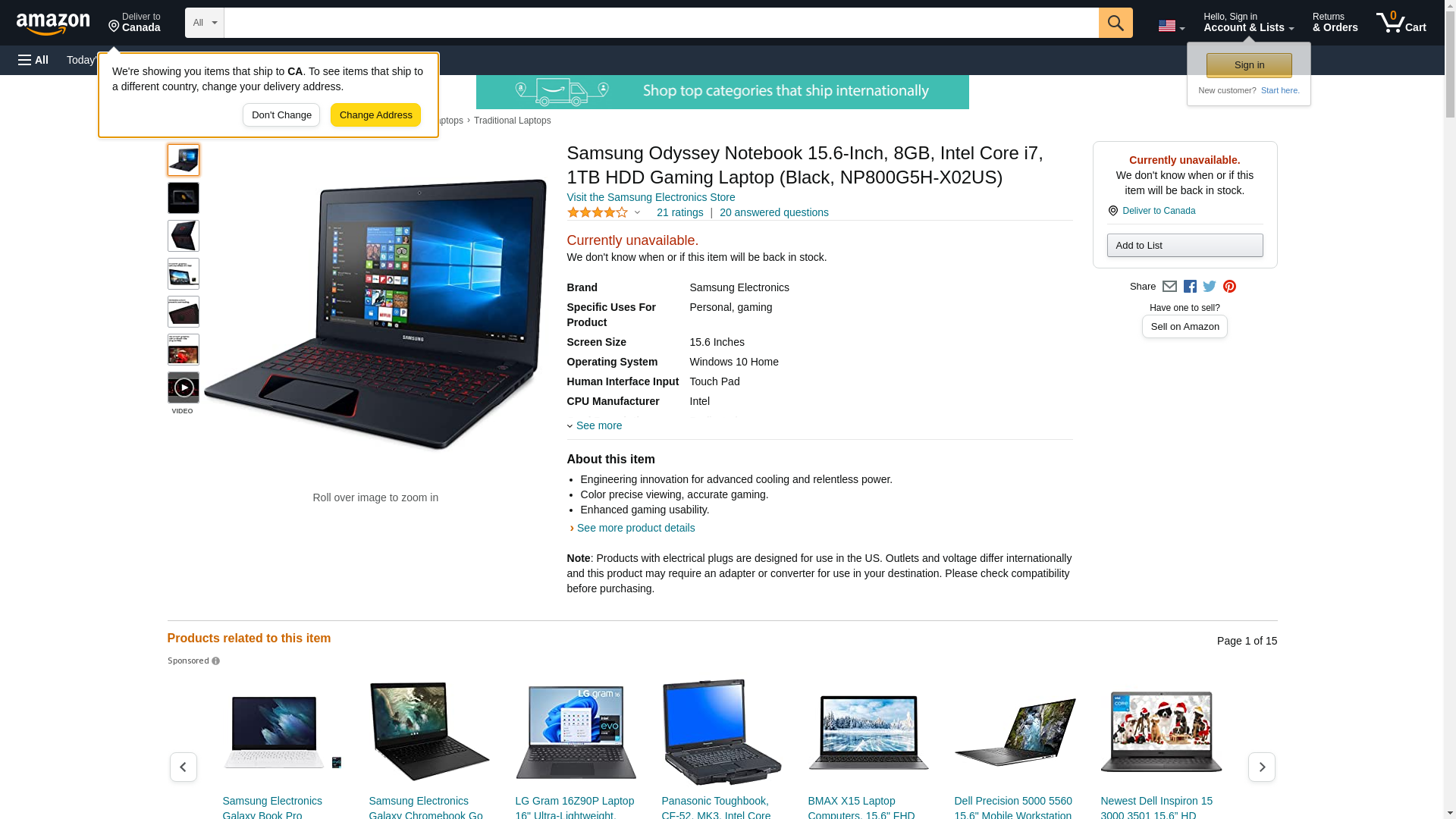 Samsung Odyssey Notebook 15.6-Inch, 8GB, Intel Core i7, 1TB HDD Gaming Laptop (Black, NP800G5H-X02US)