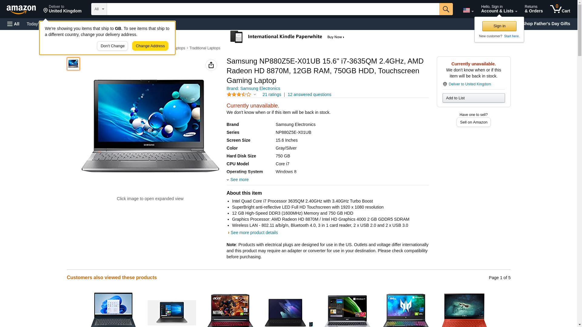 Samsung NP880Z5E-X01UB 15.6" i7-3635QM 2.4GHz, AMD Radeon HD 8870M, 12GB RAM, 750GB HDD, Touchscreen Gaming Laptop