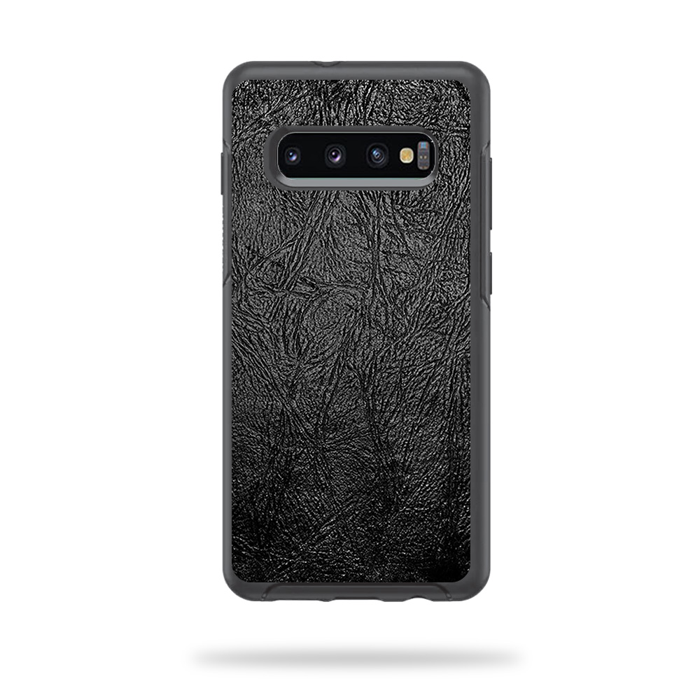 MightySkins OTSYSG10PL-Black Leather Skin for Otterbox Symmetry Samsung Galaxy S10 Plus - Black Leather
