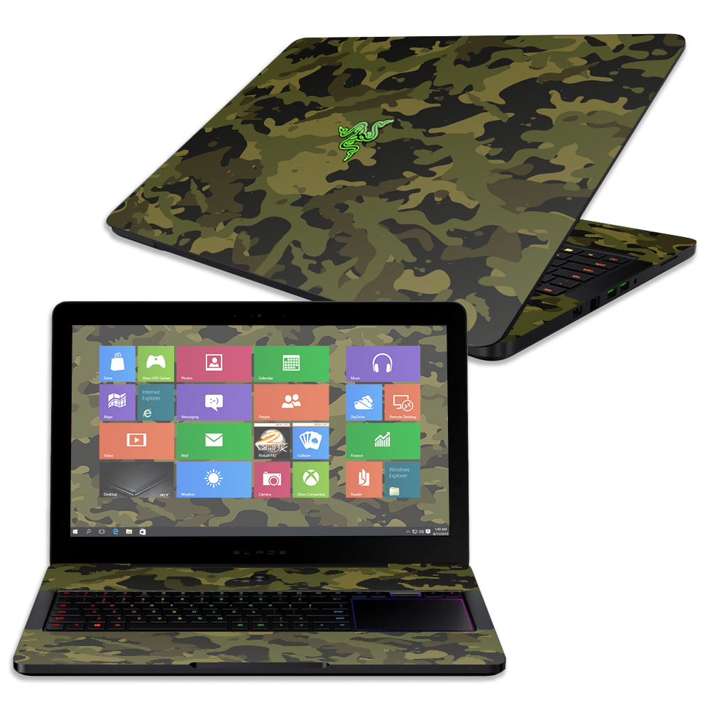 MightySkins RABLPR17-Green Camouflage Skin for 17 in. Razer Blade Pro, Green Camouflage