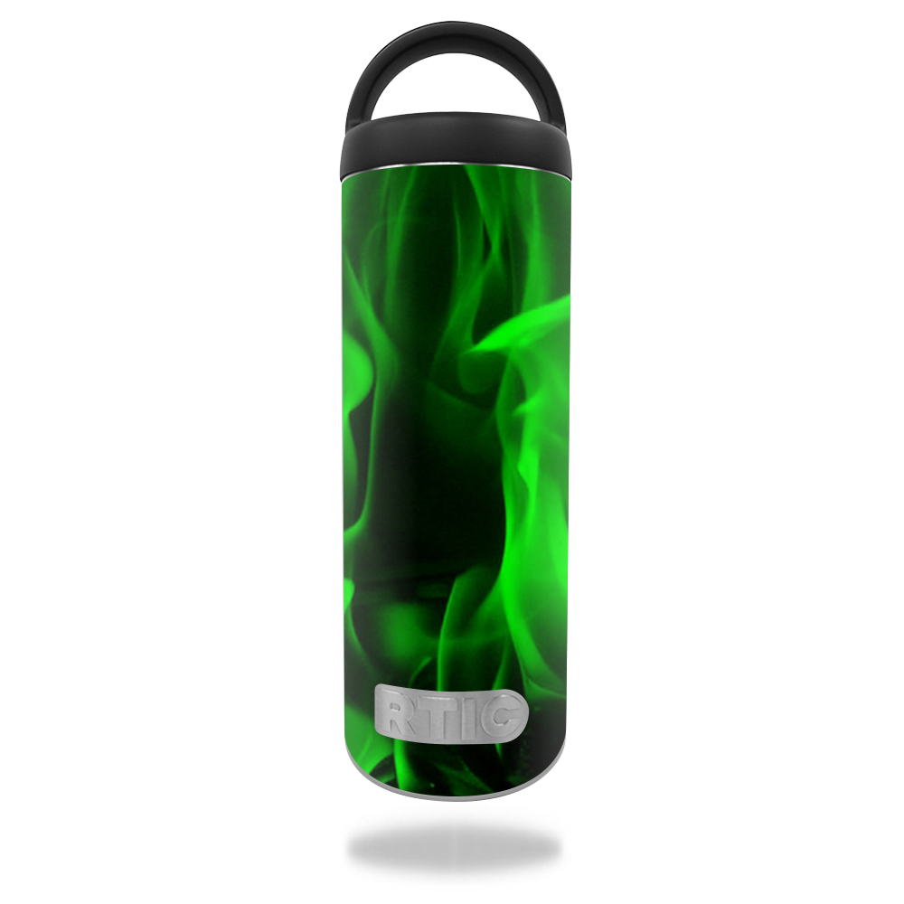 MightySkins RTBOT18-Green Flames Skin for RTIC 18 oz Bottle 2016 Wrap Cover Sticker - Green Flames